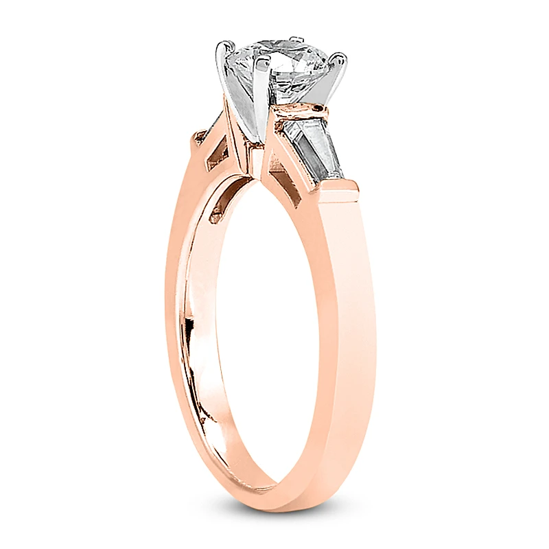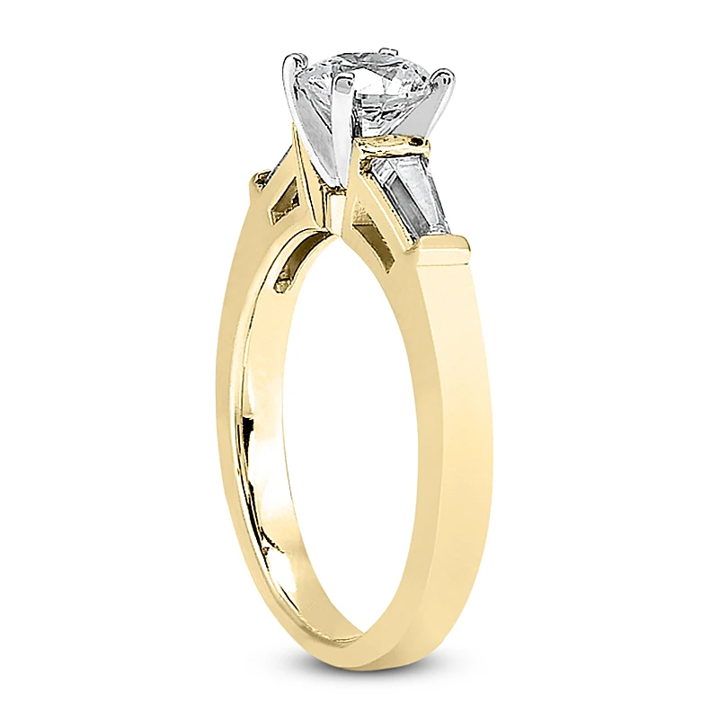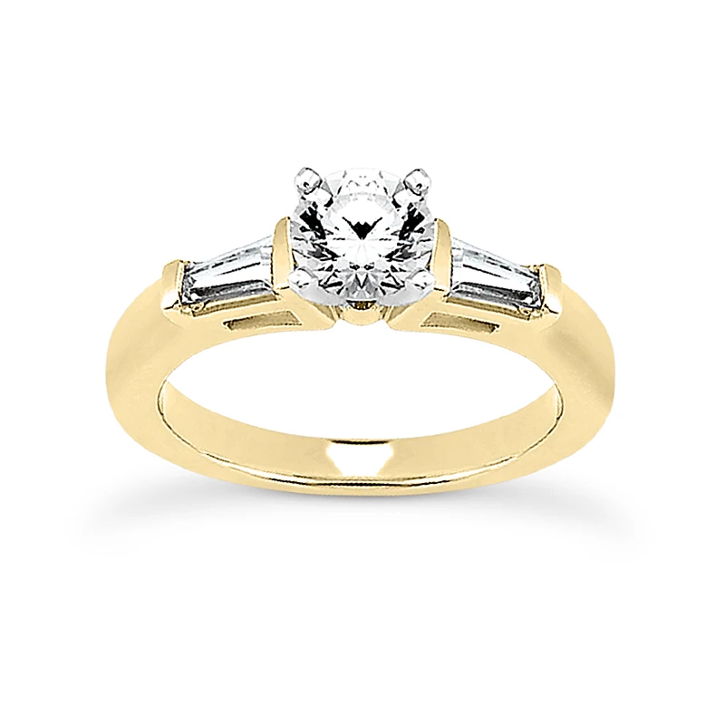 This 14K Gold Diamond Engagement Ring Setting weighs approximately 4.2 grams and showcases a 0.50 carat round diamond in the center and 0.20 carats of dazzling baguette diamonds on the sides for a total of 0.70 carat of dazzling diamonds and is available in Platinum, 18k or 14k yellow, rose, white gold, various sizes, and can be customized with any color and quality diamonds. Center diamond can be from 0.50ct to 5ct (gold weight and number of stones may vary). Please note: it will take us 3-5 business days to make this ring for you so please plan accordingly. Please contact us at 212-398-3123 if your size or desired option is not listed.