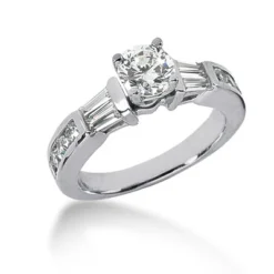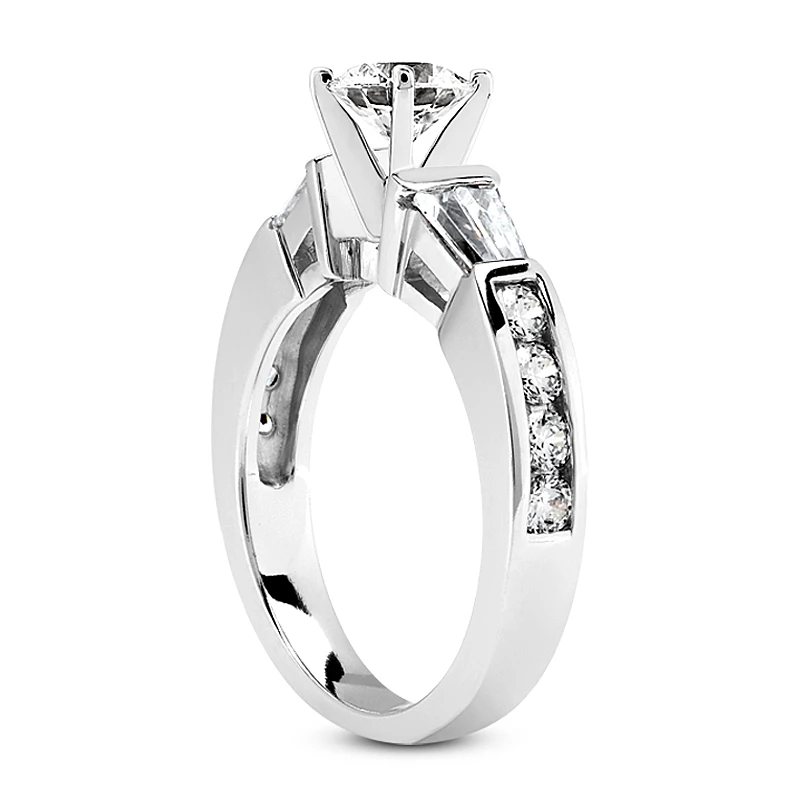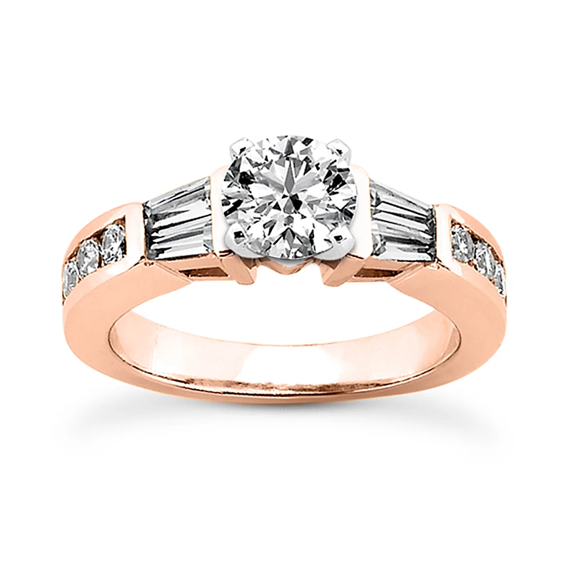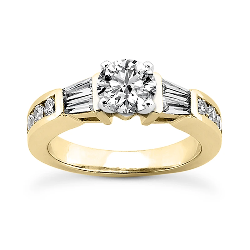 This 14K Gold Diamond Engagement Ring Setting showcases 0.56 carats of dazzling round & baguette diamonds and is available in Platinum, 18k or 14k yellow, rose, white gold, various sizes, and can be customized with any color and quality diamonds. This ring can accommodate from 0.50ct to 5ct round stone as a center (gold weight and number and carat weight of side stones may vary). Please note: This listing is for engagement ring Setting only, center diamond is for illustration purposes only and is sold separately. This Setting is priced to fit up to 0.50ct center stone. If you need it to fit a larger stone please contact us toll free in USA: 1-866-423-6262 or outside USA: 212-398-3123 prior to making a purchase as the price will vary depending on the size of your center stone.