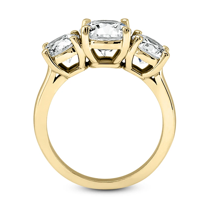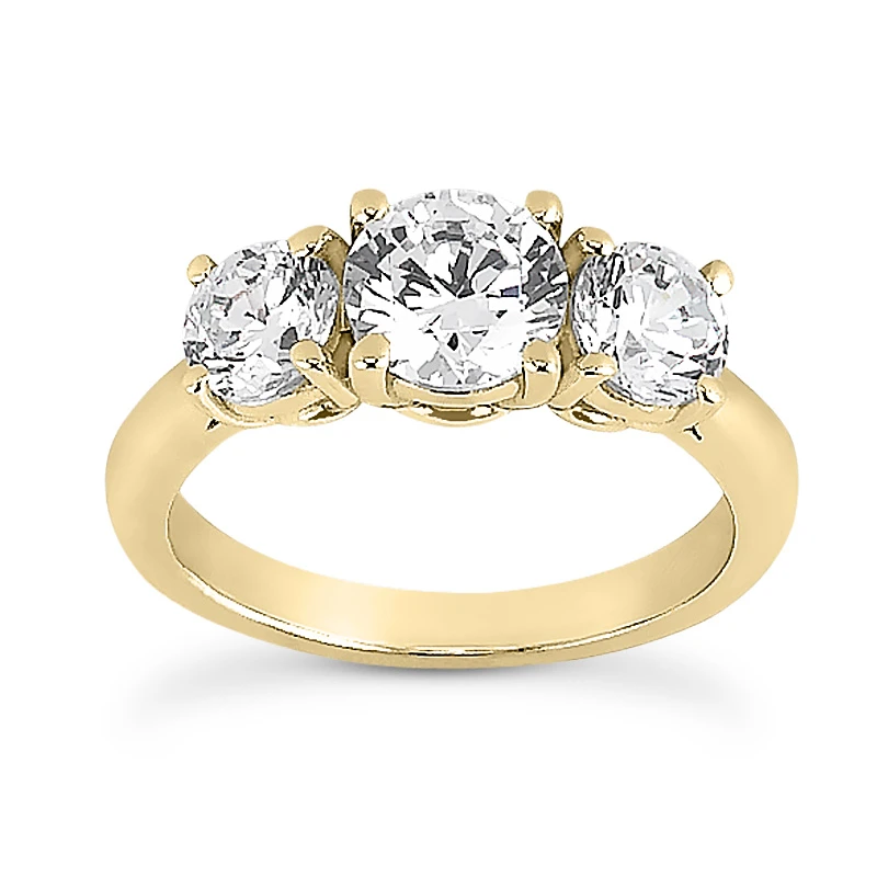 This 14K Gold Diamond Three Stone Engagement Ring showcases a 0.50 carat round diamond in the center and 0.50 carat of round diamonds on the sides for a total of 1 carat of dazzling diamonds and is available in Platinum, 18k or 14k yellow, rose, white gold, various sizes, and can be customized with any color and quality diamonds. Center diamond can be from 0.50ct to 3ct (gold weight and number of stones may vary). Please note: it will take us 3-5 business days to make this ring for you so please plan accordingly. Please contact us at 212-398-3123 if your size or desired option is not listed.