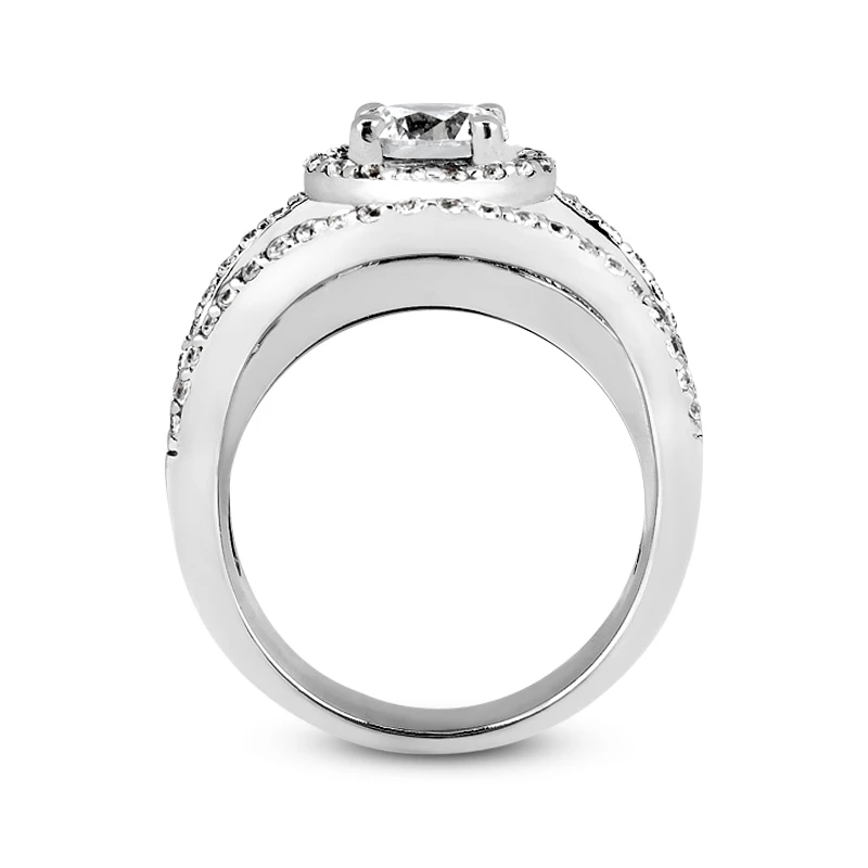 14K White Gold Diamond Unique Engagement Ring 1.17ct 12.6mm