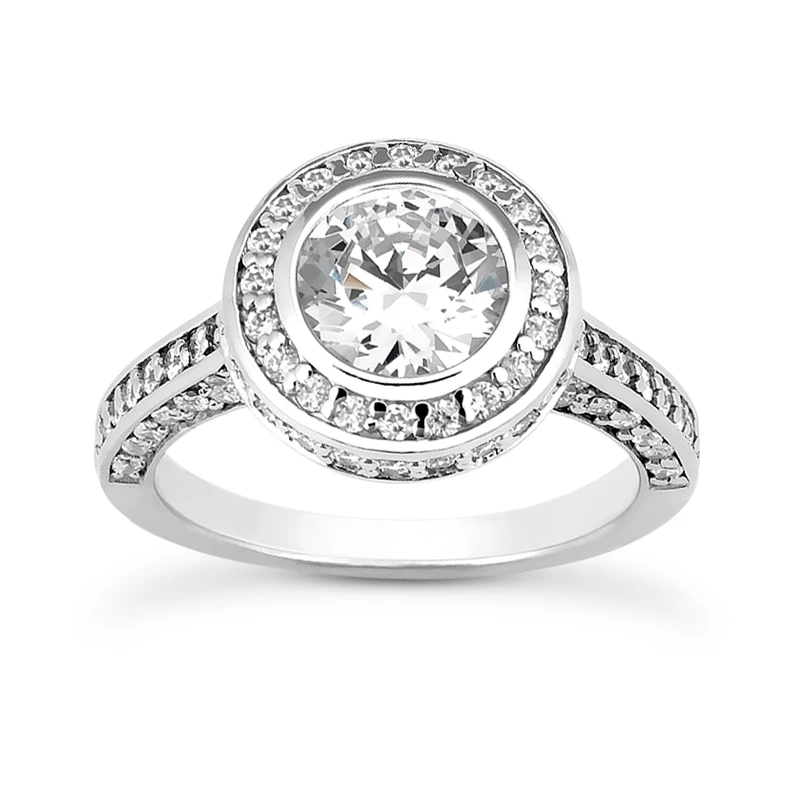 14K White Gold Diamond Unique Engagement Ring 1.44ct 2.2mm