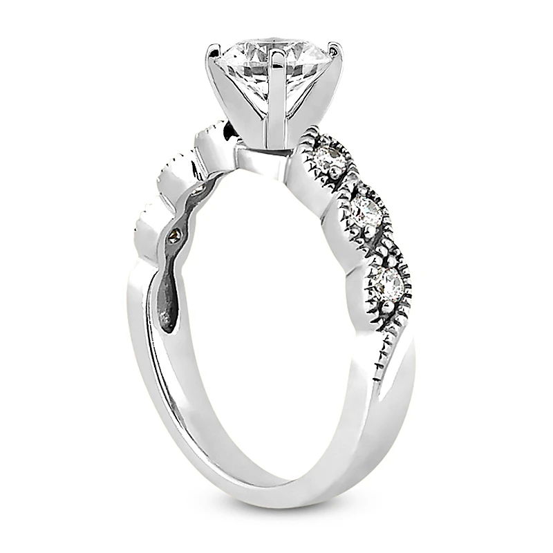 14K White Gold Diamond Unique Engagement Ring Set 0.76ct