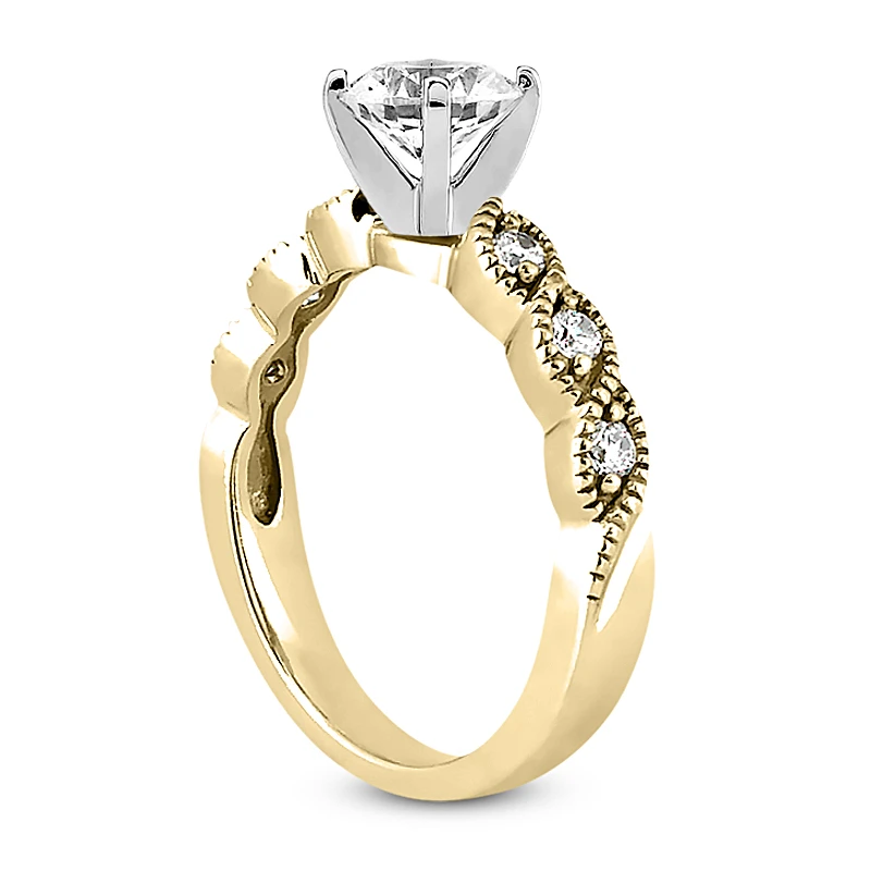This 14K Gold Diamond Unique Engagement Ring Set consists of a diamond engagement ring and matching band. The engagement ring showcases a 0.50 carat round diamond in the center and 0.12 carats of round diamonds on the sides for a total of 0.62 carat of dazzling diamonds. The band showcases 0.14 carats of dazzling round diamonds. This set is available in Platinum, 18k or 14k yellow, rose, white gold, various sizes, and can be customized with any color and quality diamonds. Please contact us if you would like to customize it.