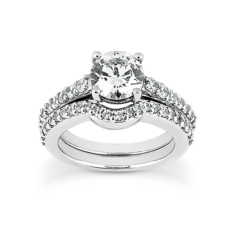14K White Gold Diamond Unique Engagement Ring Set 1.04ct