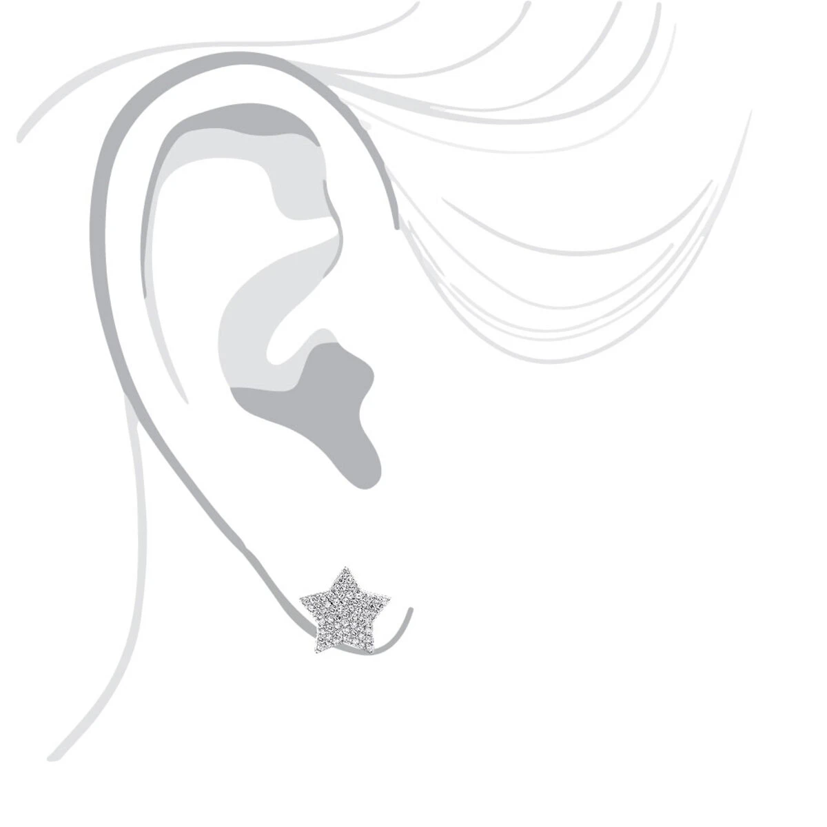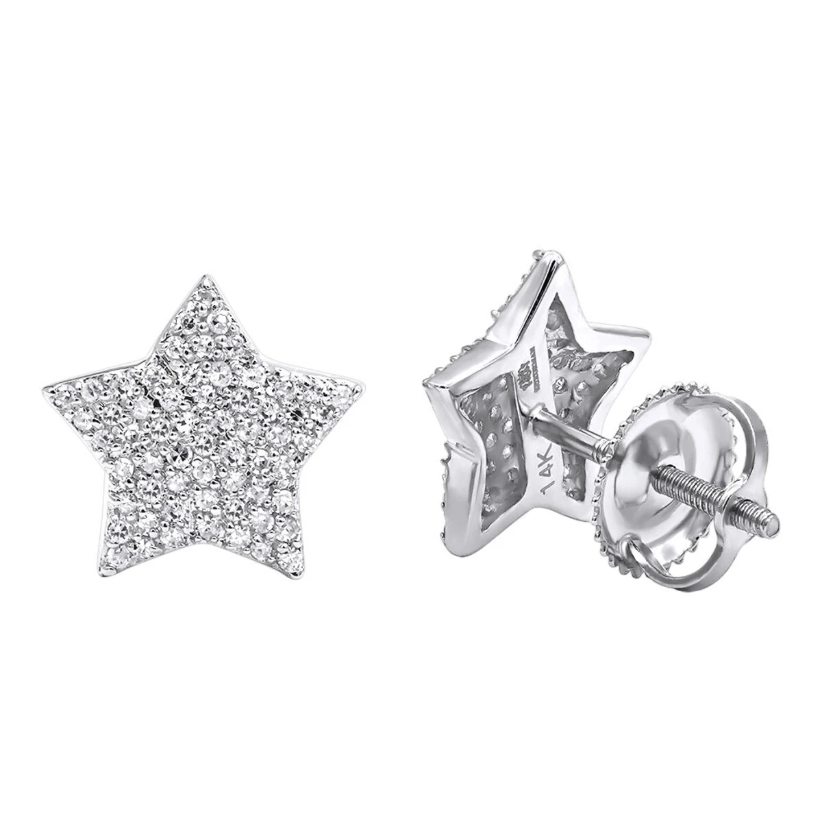 14K White Gold Fully Iced Out Pave Diamond Star Earrings Studs 0.25CT By Luxurman