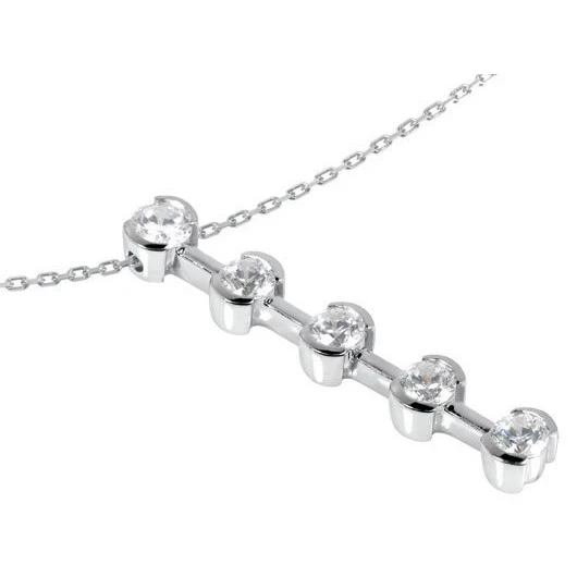 14K White Gold Handmade 5 Stone Diamond Journey Pendant 0.75ct