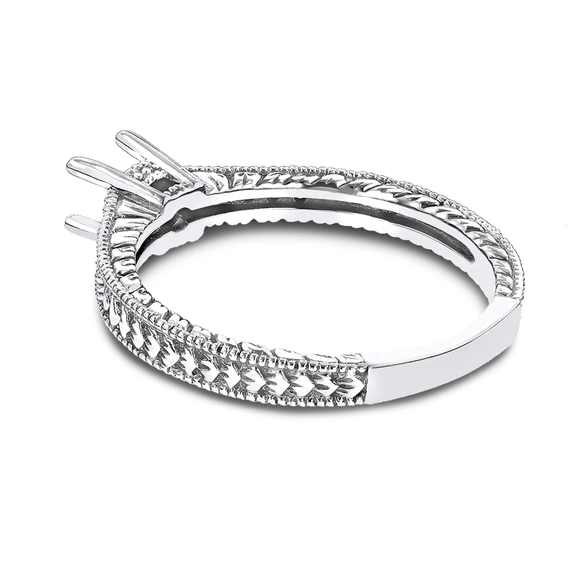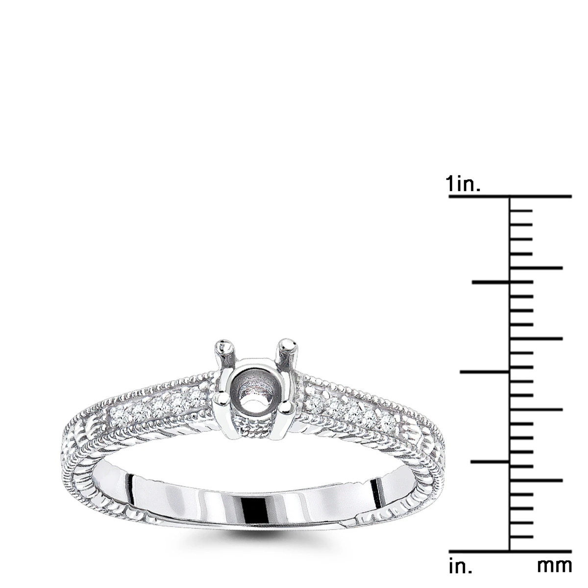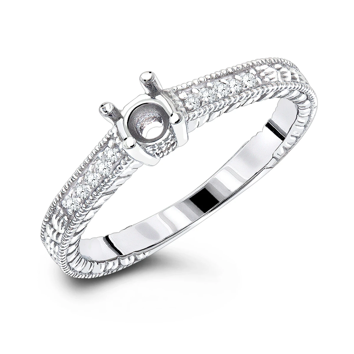 14K White Gold Handmade Diamond Engagement Ring Mounting 0.07ct