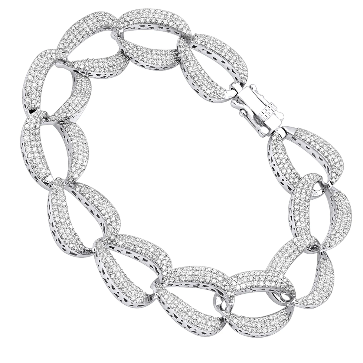 14K White Gold Pave Diamond Chain Link Bracelet For Women 3.75ct By Luxurman