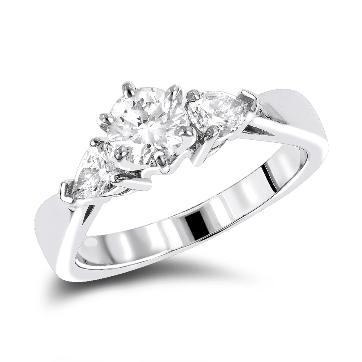 14K White Gold Pear And Round Diamond Designer Engagement Ring 0.78ct