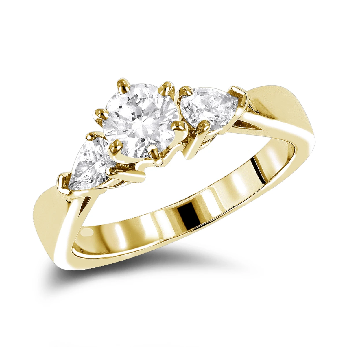 This 14K Gold Diamond Designer Engagement Ring weighs approximately 5 grams and showcases a 0.50 carat round diamond in the center and 0.28 carats of pear cut diamonds on the sides for a total of 0.78 carats of dazzling diamonds and is available in Platinum, 18k or 14k yellow, rose, white gold, various sizes, and can be customized with any color and quality diamonds. Center diamond can be from 0.50ct to 5ct (gold weight and number of stones may vary). Please note: it will take us 3-5 business days to make this ring for you so please plan accordingly. Please contact us at 212-398-3123 if your size or desired option is not listed.