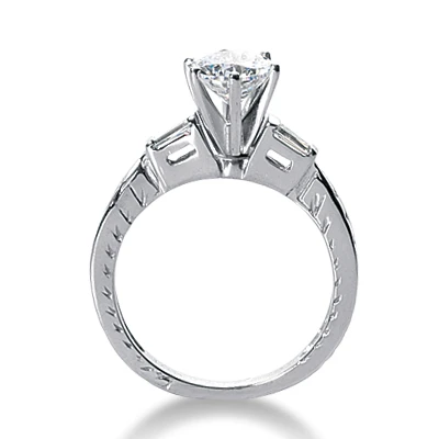 This 14K Gold Diamond Engagement Ring Mounting weighs approximately 3.9 grams and showcases 0.12 carats of dazzling baguette diamonds and is available in Platinum, 18k or 14k yellow, rose, white gold, various sizes, and can be customized with any color and quality diamonds. This ring can accommodate from 0.50ct to 5ct round stone as a center (gold weight and number and carat weight of side stones may vary). Please note: This listing is for engagement ring mounting only, center diamond is for illustration purposes only and is sold separately. This mounting is priced to fit up to 0.50ct center stone. If you need it to fit a larger stone please contact us toll free in USA: 1-866-423-6262 or outside USA: 212-398-3123 prior to making a purchase as the price will vary depending on the size of your center stone.