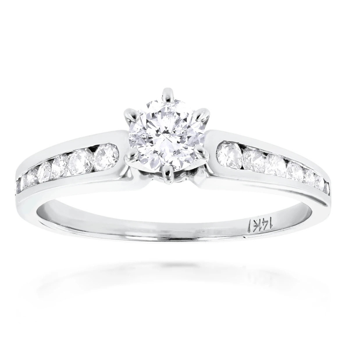 14K White Gold Prong And Channel Set Diamond Engagement Ring 0.84ct