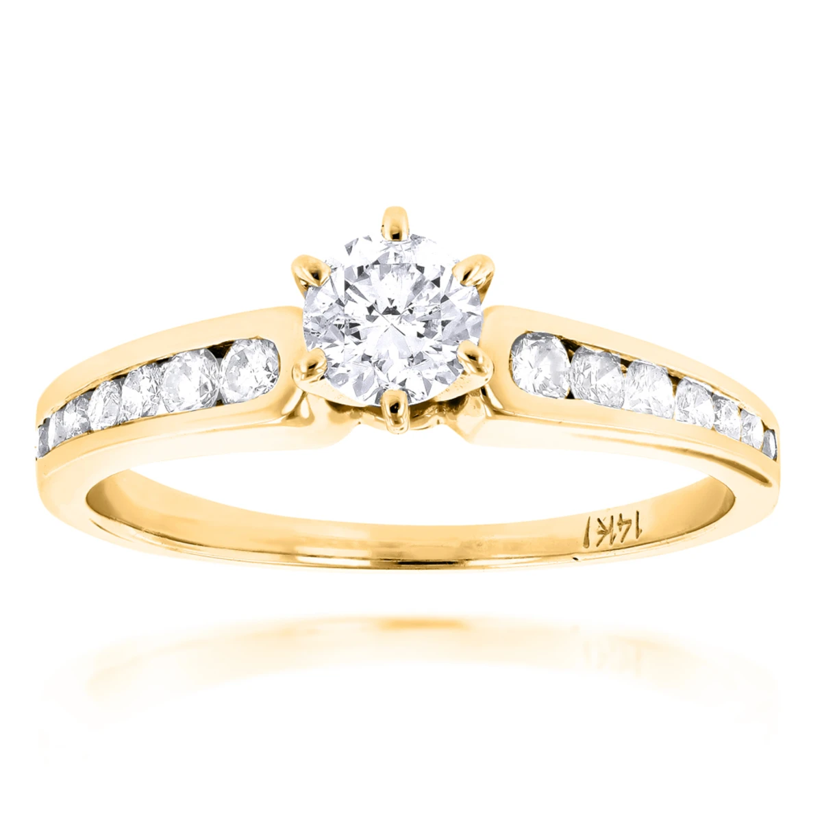 This 14K Gold Designer Diamond Engagement Ring weighs approximately 3.2 grams and showcases a 0.50 carat round diamond in the center and 0.34 carats of round diamonds on the sides for a total of 0.84 carats of dazzling diamonds and is available in Platinum, 18k or 14k yellow, rose, white gold, various sizes, and can be customized with any color and quality diamonds. Center diamond can be from 0.50ct to 5ct (gold weight and number of stones may vary). Please note: it will take us 3-5 business days to make this ring for you so please plan accordingly. Please contact us at 212-398-3123 if your size or desired option is not listed.