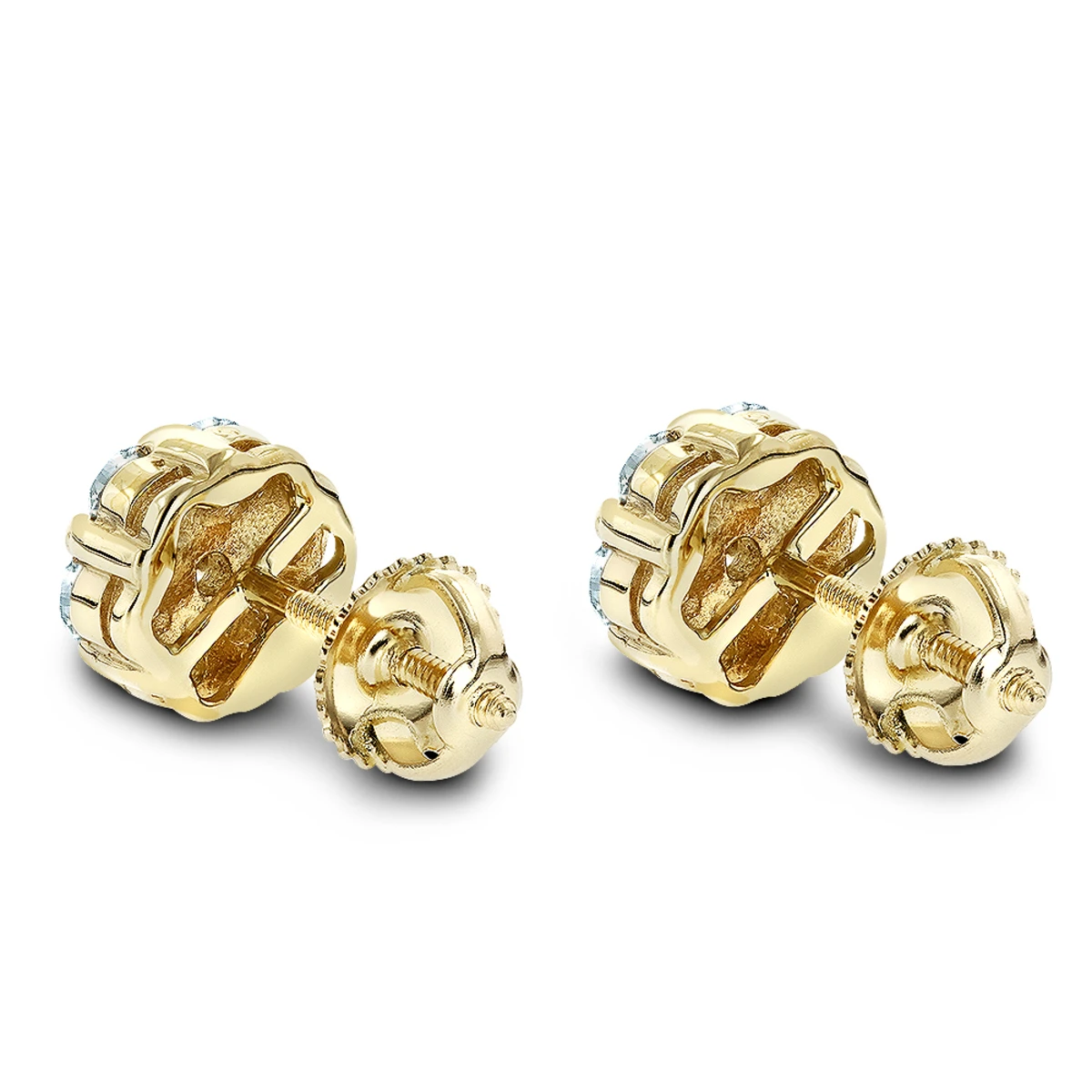 These dazzling 14K Gold Prong Round Diamond Clusters Earrings 1ct Studs weigh approximately 3 grams and showcase a total of 14 sparkling round diamonds and a screw back posts for secure wear on pierced ears. These magnificent 1-carat diamond clusters are a great alternative to solitaire diamond stud earrings, and are available in 14K white, yellow and rose gold.