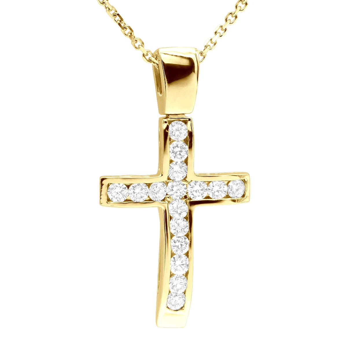 This 14K Gold Round Diamond Cross Pendant from Luxurman is a stunning piece of jewelry that is perfect for any occasion. The pendant is crafted from 14K gold and features a round diamond cross set in a channel setting. The diamond is of SI clarity and has a total carat weight of 0.48. The pendant is available in white, yellow, and rose gold, so you can choose the color that best suits your style.The cross pendant is a timeless and classic design that is perfect for any religious occasion. It is a great way to show your faith and make a statement. The diamond adds a touch of sparkle and elegance to the piece, making it a beautiful accessory for any outfit. The pendant is also unisex, so it can be worn by both men and women.This 14K Gold Round Diamond Cross Pendant from Luxurman is a beautiful and meaningful piece of jewelry that will last a lifetime. Whether you are looking for a special gift or something to add to your own jewelry collection, this pendant is sure to be a treasured piece for years to come. You also can personalize this piece or check we’ve already made and create your own design.