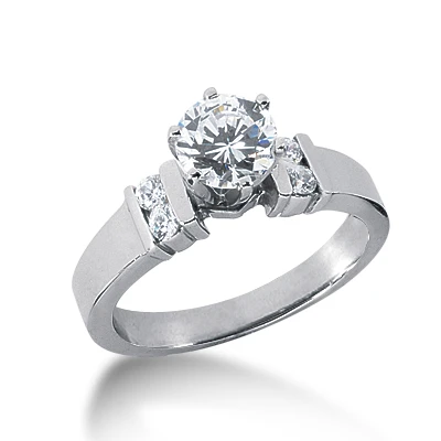 14K White Gold Round Diamond Engagement Ring Mounting 0.16ct