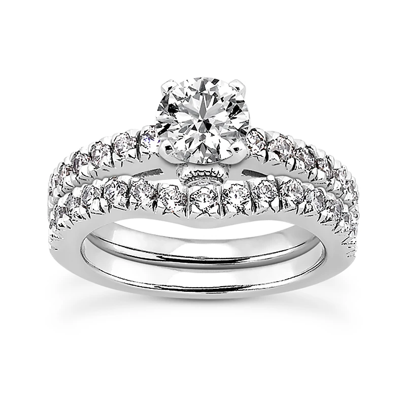 14K White Gold Round Diamond Engagement Ring Set 0.98ct