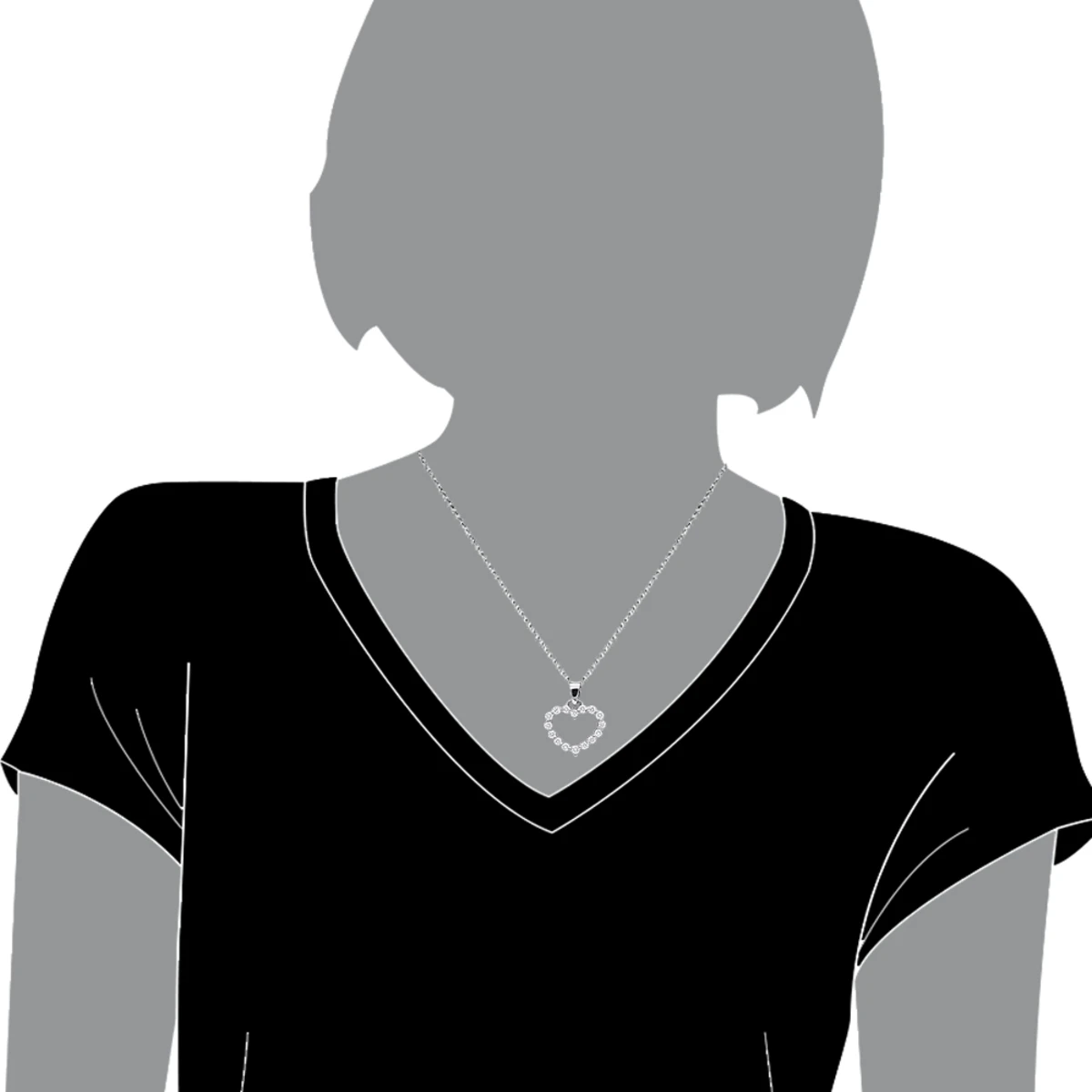 14K White Gold Round Diamond Heart Necklace 0.48ct