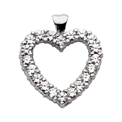 14K White Gold Round Diamond Heart Necklace 2.40ct