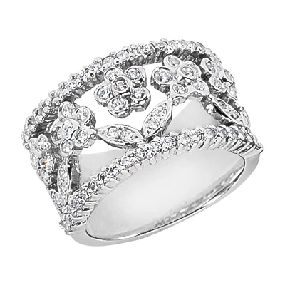 14K White Gold Round Diamond Ladies Ring 0.82ct 12.8mm