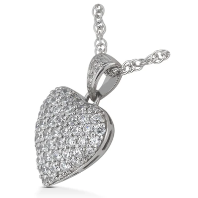 14K White Gold Round Diamond Pave Heart Pendant 3ct