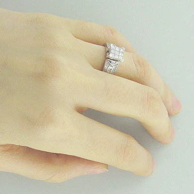 14K White Gold Round Princess Cut Diamond Engagement Ring 1.10ct