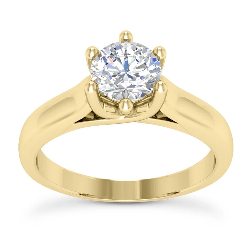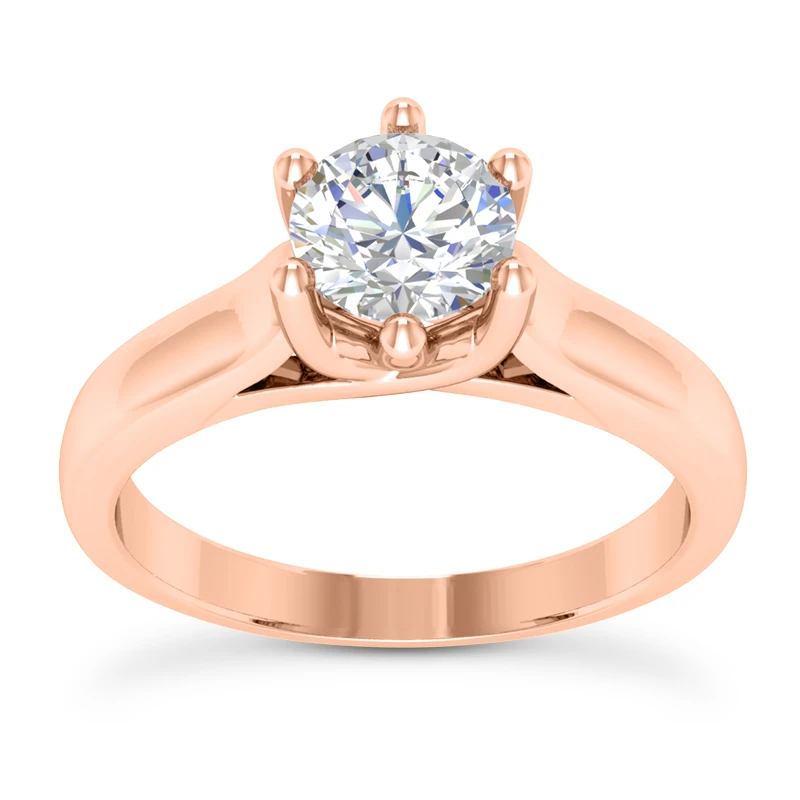 This 14K Gold Six-Prong Engagement Ring Mounting is available in Platinum, 18k or 14k yellow, rose, white gold, various sizes, and can be customized with any color and quality diamonds. This ring can accommodate from 0.50ct to 4ct round stone as a center (gold weight might vary depending on the size of the stone). Please note: This listing is for engagement ring mounting only, center diamond is for illustration purposes only and is sold separately. This mounting is priced to fit up to 0.50ct center stone. If you need it to fit a larger stone please contact us toll free in USA: 1-866-423-6262 or outside USA: 212-398-3123 prior to making a purchase as the price will vary depending on the size of your center stone.