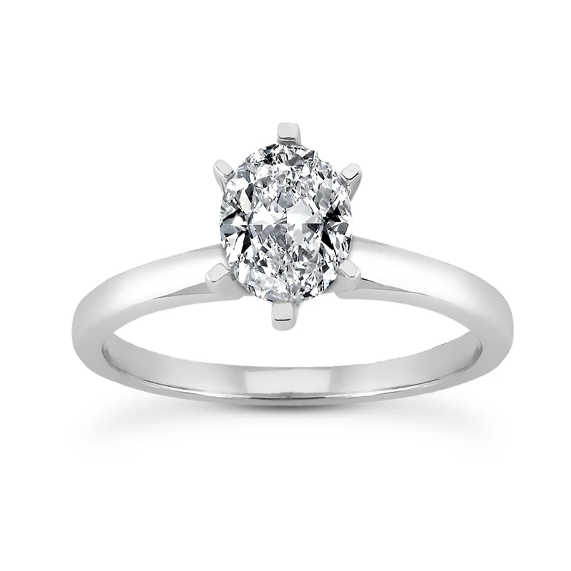 14K White Gold Solitaire Oval Cut Diamond Engagement Ring 0.50ct 2mm