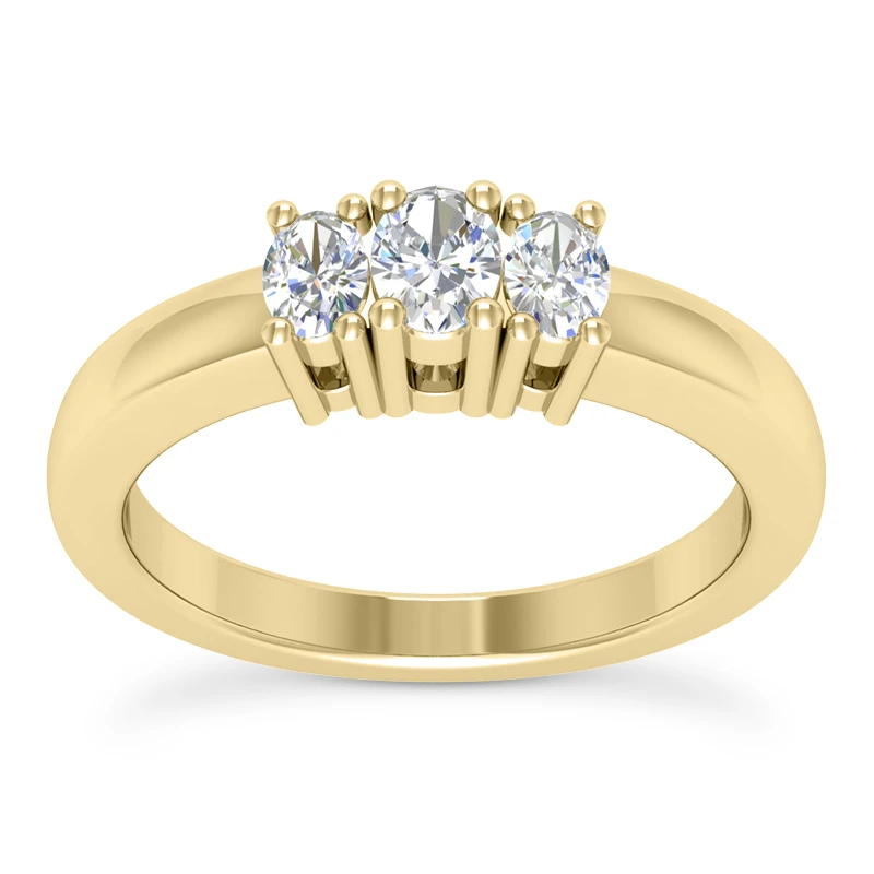 This 14K Gold Three Stone Diamond Engagement Ring showcases a 0.20 carat oval cut diamond in the center and 0.30 carat of oval cut diamonds on the sides for a total of 0.50 carat of dazzling diamonds and is available in Platinum, 18k or 14k yellow, rose, white gold, various sizes, and can be customized with any color and quality diamonds. Center diamond can be from 4mmx3mm (0.20ct) to 5.5mmx3.5mm (gold weight and number of stones may vary). Please note: it will take us 3-5 business days to make this ring for you so please plan accordingly. Please contact us at 212-398-3123 if your size or desired option is not listed.