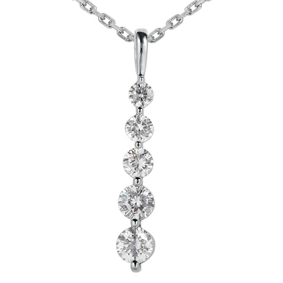 14K White Gold Unique 5 Stone Diamond Journey Pendant 0.50ct
