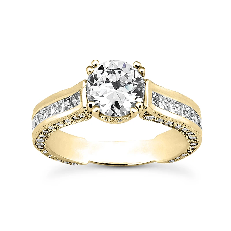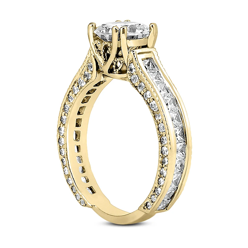 This 14K Gold Unique Diamond Engagement Ring showcases a 1 carat round diamond in the center and 1.64 carats of round & princess cut diamonds on the sides for a total of 2.64 carat of dazzling diamonds and is available in Platinum, 18k or 14k yellow, rose, white gold, various sizes, and can be customized with any color and quality diamonds. Center diamond can be from 1ct to 2ct (gold weight and number of stones may vary). Please note: it will take us 3-5 business days to make this ring for you so please plan accordingly. Please contact us at 212-398-3123 if your size or desired option is not listed.