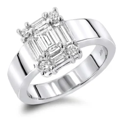 This Women’s Diamond Ring features 1.5 carats of round, baguette & emerald cut diamonds (9 diamonds) set in an invisible setting and gives an unbelievable shine as 5 carat solitaire ring making it a perfect diamond engagement ring. This ladies diamond engagement ring is available in 14k yellow, rose, white gold and can also be custom made in 18k gold and platinum. Please contact us at 212-398-3123 if you would like to customise this ring.