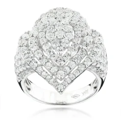 18K White Gold Designer Diamond Drop Ring For Women 3.75ct