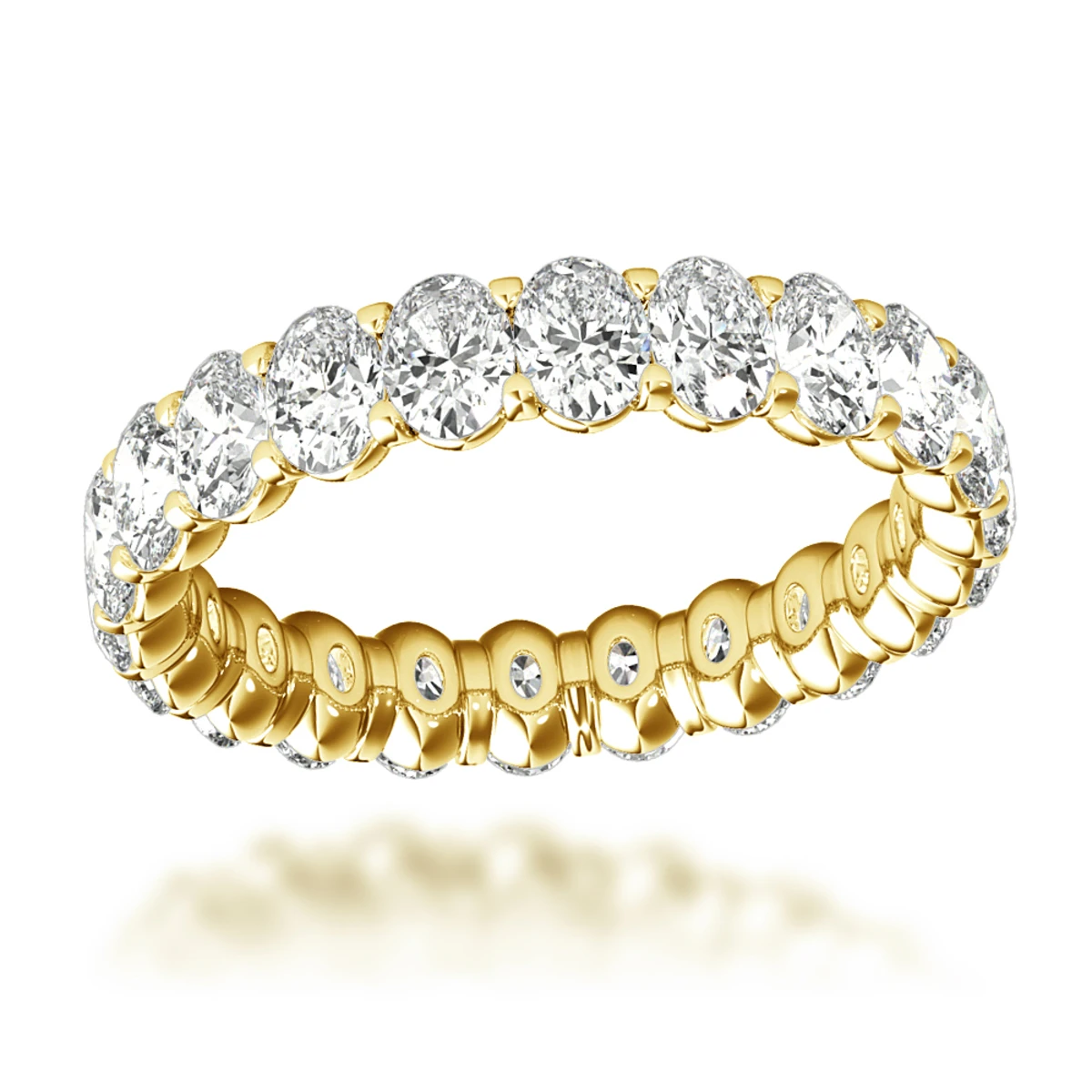 18K Yellow Gold Oval Cut Diamond Anniversary Ring Eternity Band For Women 3ct