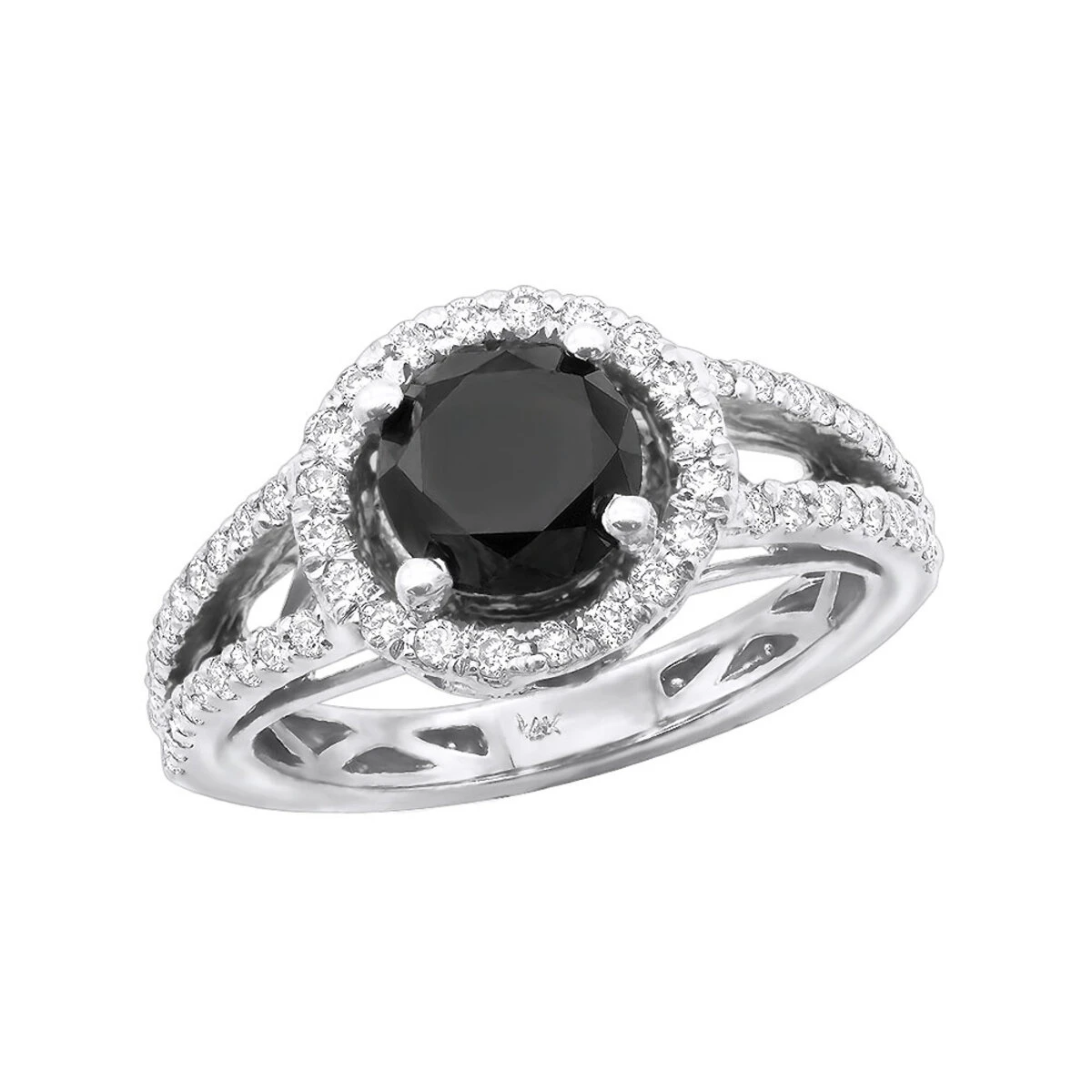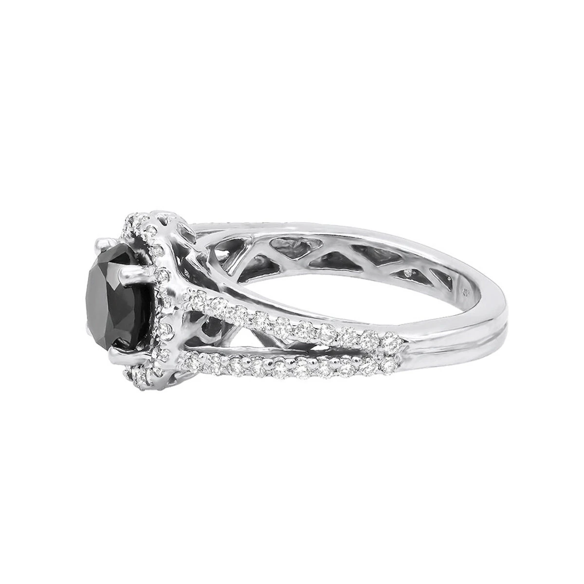 Black Diamond Engagement 14K White Gold Ring 1.62ct