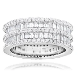 Designer 4.5 Carat Round Baguette Diamonds Eternity Band 14K White Gold