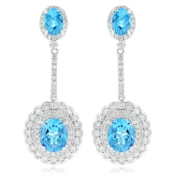 Designer Blue Topaz Diamond Earrings For Women By Luxurman 3.5ct 14K White Gold
