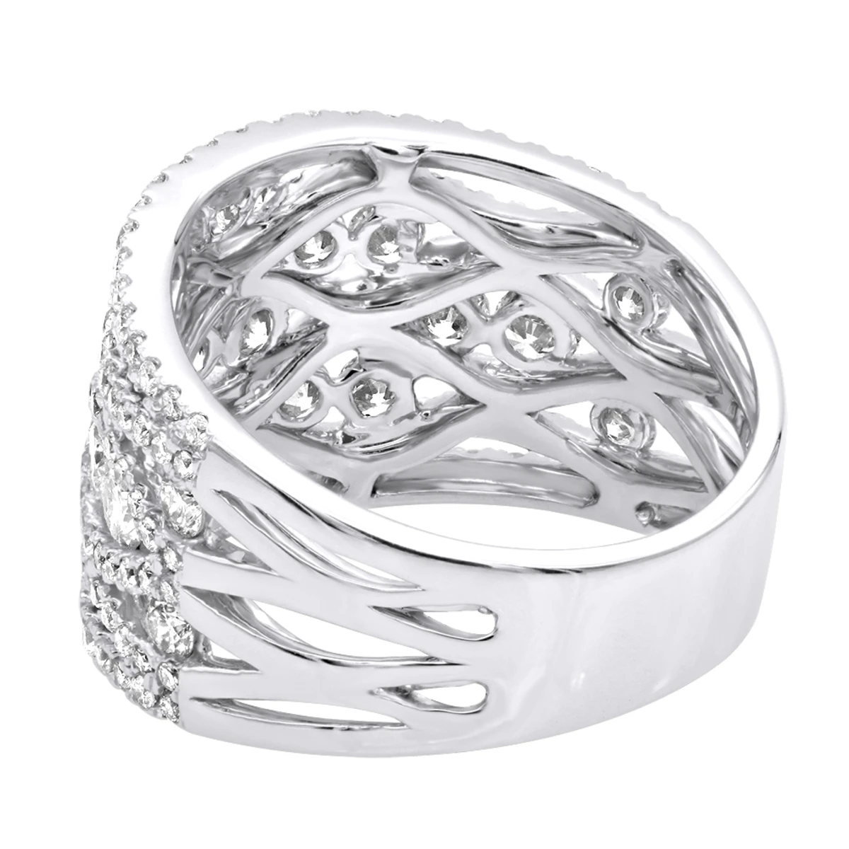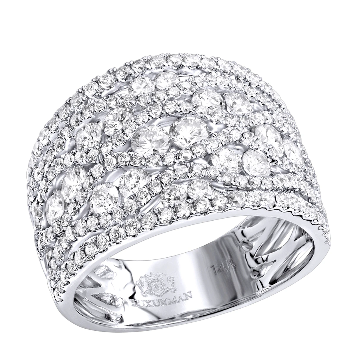 Designer Right Hand Diamond Rings: this Diamond Right Hand Ring by Luxurman is a uniquely designed band with a mix of large round diamonds in channel setting and smaller micro pave set round diamonds around them totaling 2.35 carats of sparkling diamonds. This unique diamond ring for women is available in 14k white gold, yellow gold and rose gold as well as 18k gold as a custom order.