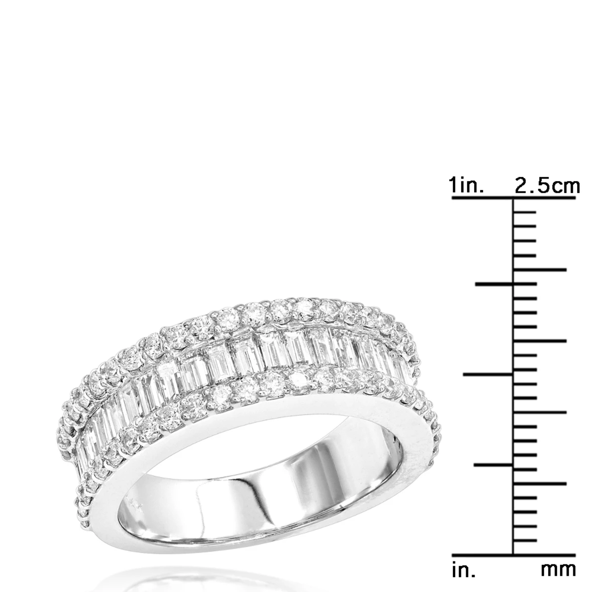 Diamond Bands 14K White Gold Round Baguette Diamond Band 1.84