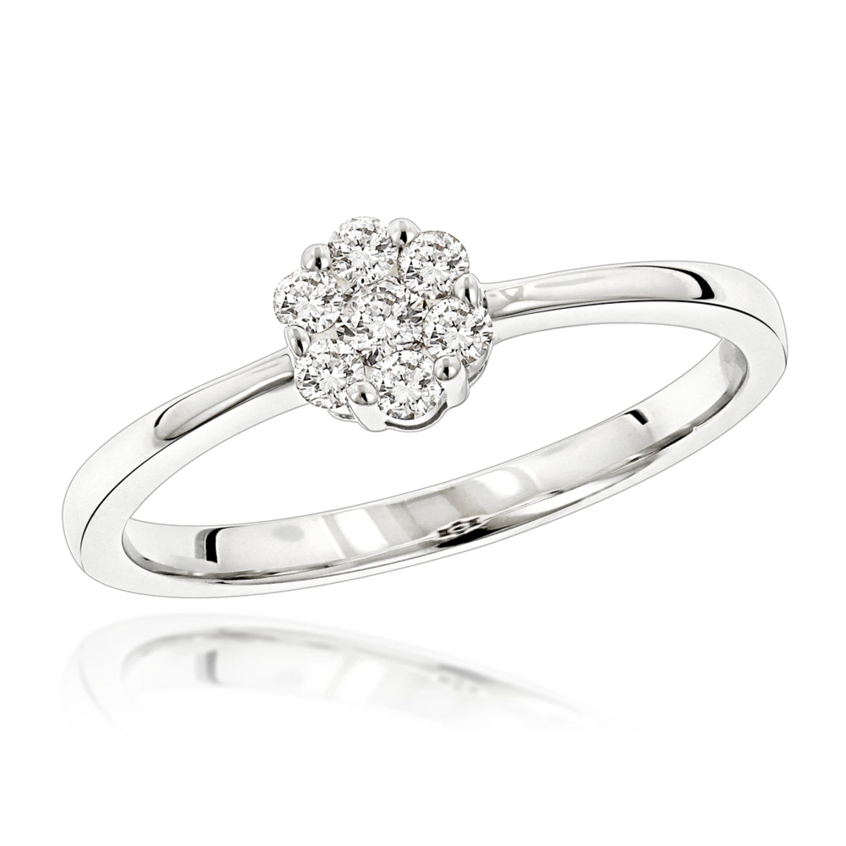 This 14K Gold Pre-Set Diamond Engagement Ring showcases 0.22 carats of sparkling round diamonds, each masterfully set in lustrous 14K gold, featuring an elegant design and a highly polished gold finish, this lady’s flower diamond ring makes a unique pre-set diamond engagement ring or a promise ring, and is available in 14K white, yellow and rose gold.