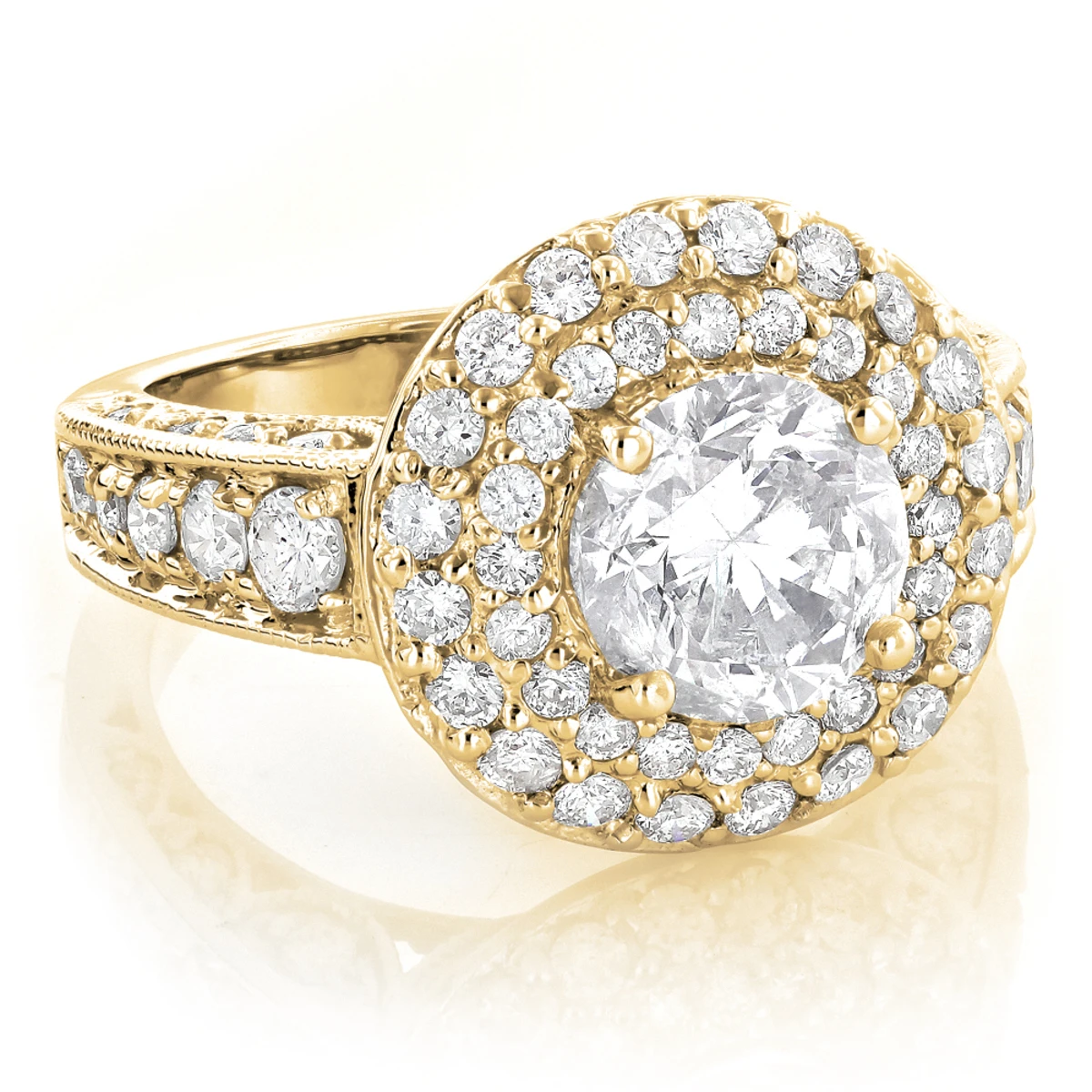 This 14K Gold Diamond Engagement Ring Mounting showcases 2 carats of dazzling round diamonds and is available in Platinum, 18k or 14k yellow, rose, white gold, various sizes, and can be customized with any color and quality diamonds. This ring can be made to accommodate from 1/2ct to 2ct round stone as a center (gold weight and number and carat weight of side stones may vary). Please note: This listing is for engagement ring mounting only, center diamond is for illustration purposes only and is sold separately.