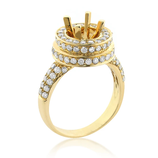 Halo 14K Yellow Gold Double Disk Diamond Engagement Ring Setting 1.60ct