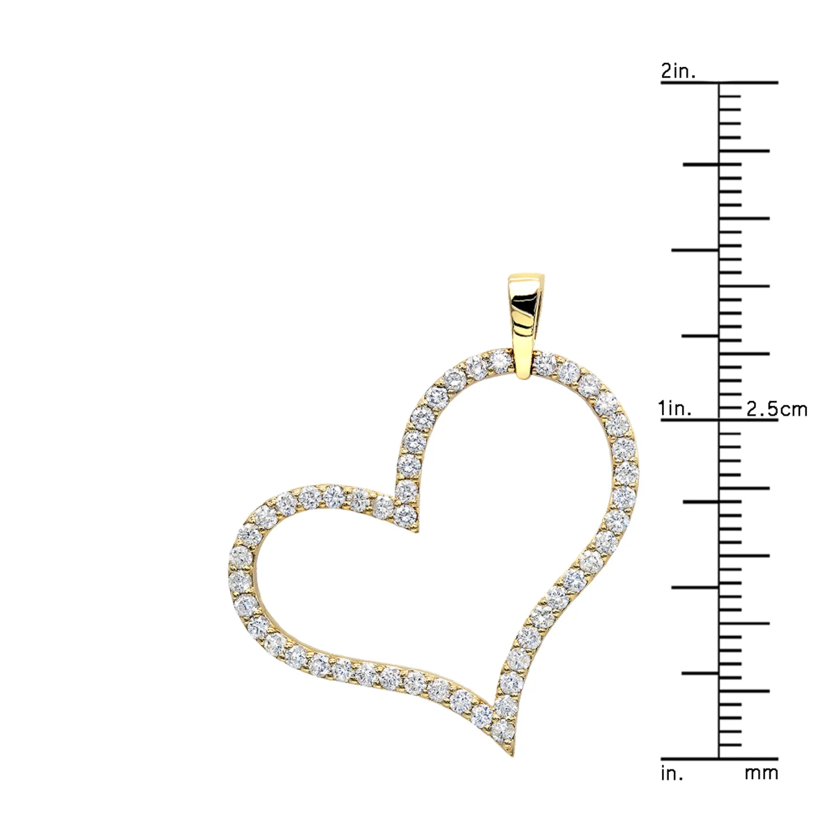 Heart 14K Yellow Gold Round Diamond Heart Pendant 1.5ct By LUXURMAN