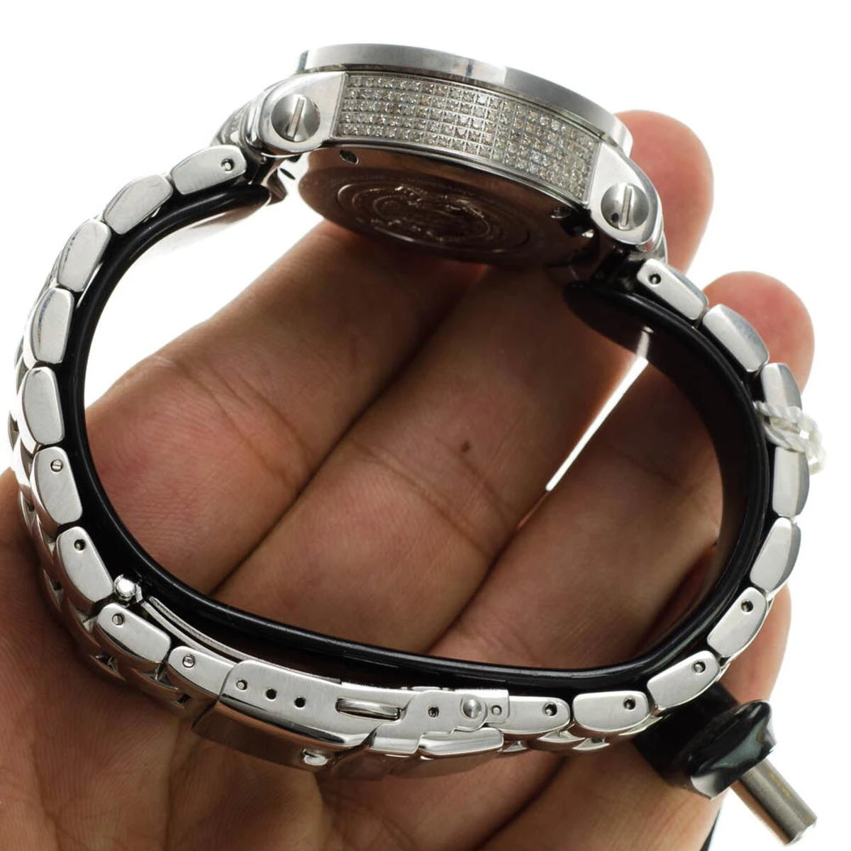 This Joe Rodeo Ladies Diamond Watch is fully paved with genuine diamonds totaling 8.00 carats that are set on a highly polished silver tone Stainless Steel case and band. This fine diamond watch by Joe Rodeo is water-resistant to 100 meters (330 ft). A quality Swiss made quartz movement will accurately keep time for you. This Joe Rodeo Rio diamond watch comes with two interchangeable straps in different colors. The patented strap adjusts once for a perfect fit, and comes on and off with the press of a button.