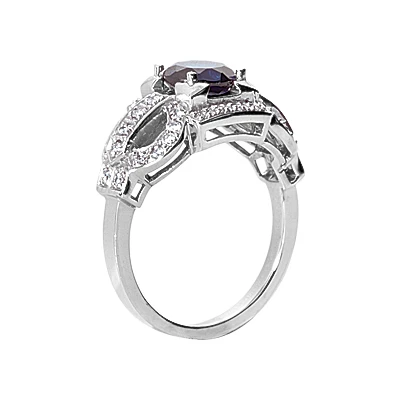 Ladies Blue Sapphire And Diamond Ring 14K White Gold 0.34ctd 1.00cts
