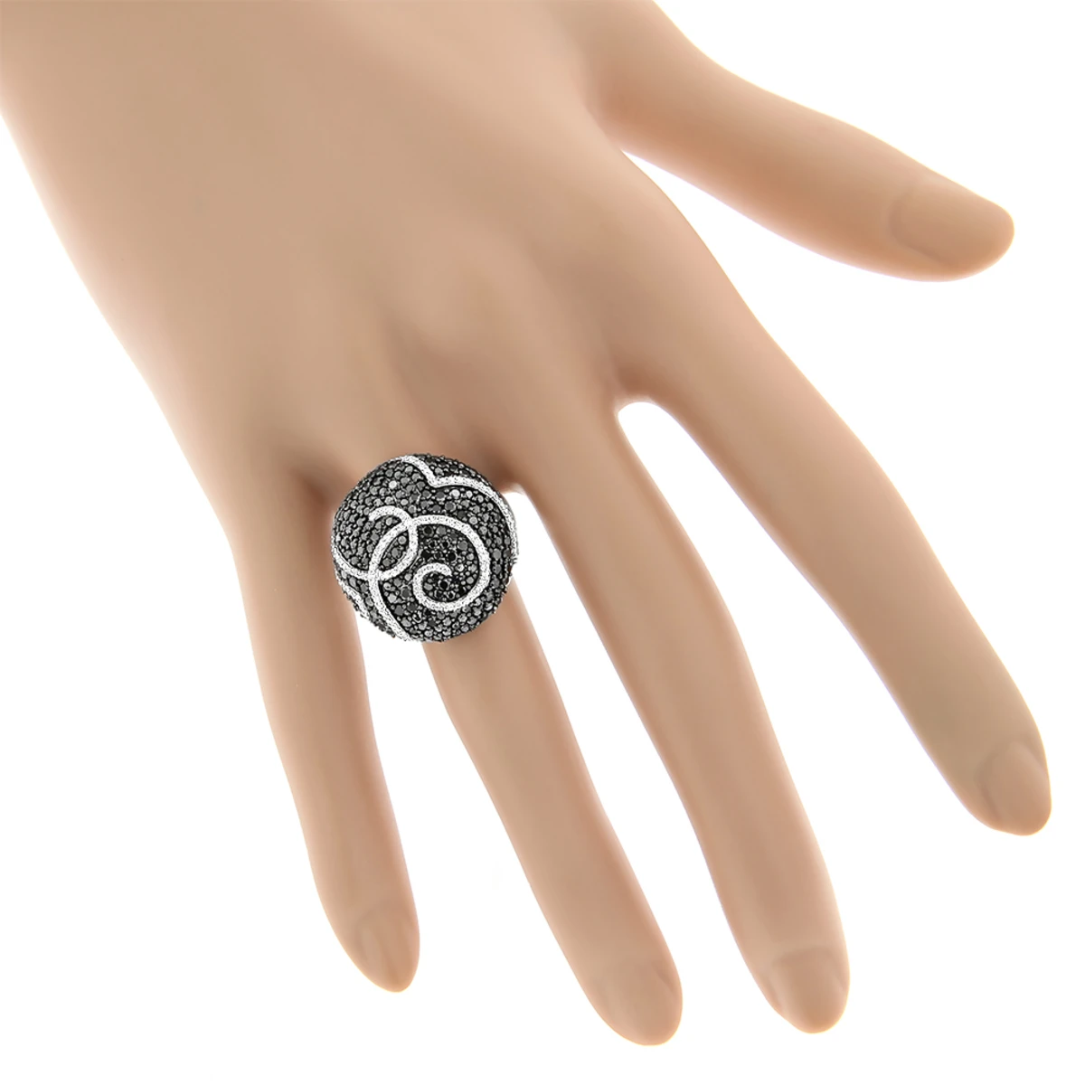 Ladies Designer Diamond Ring 2.18ct 18K White Gold Black White