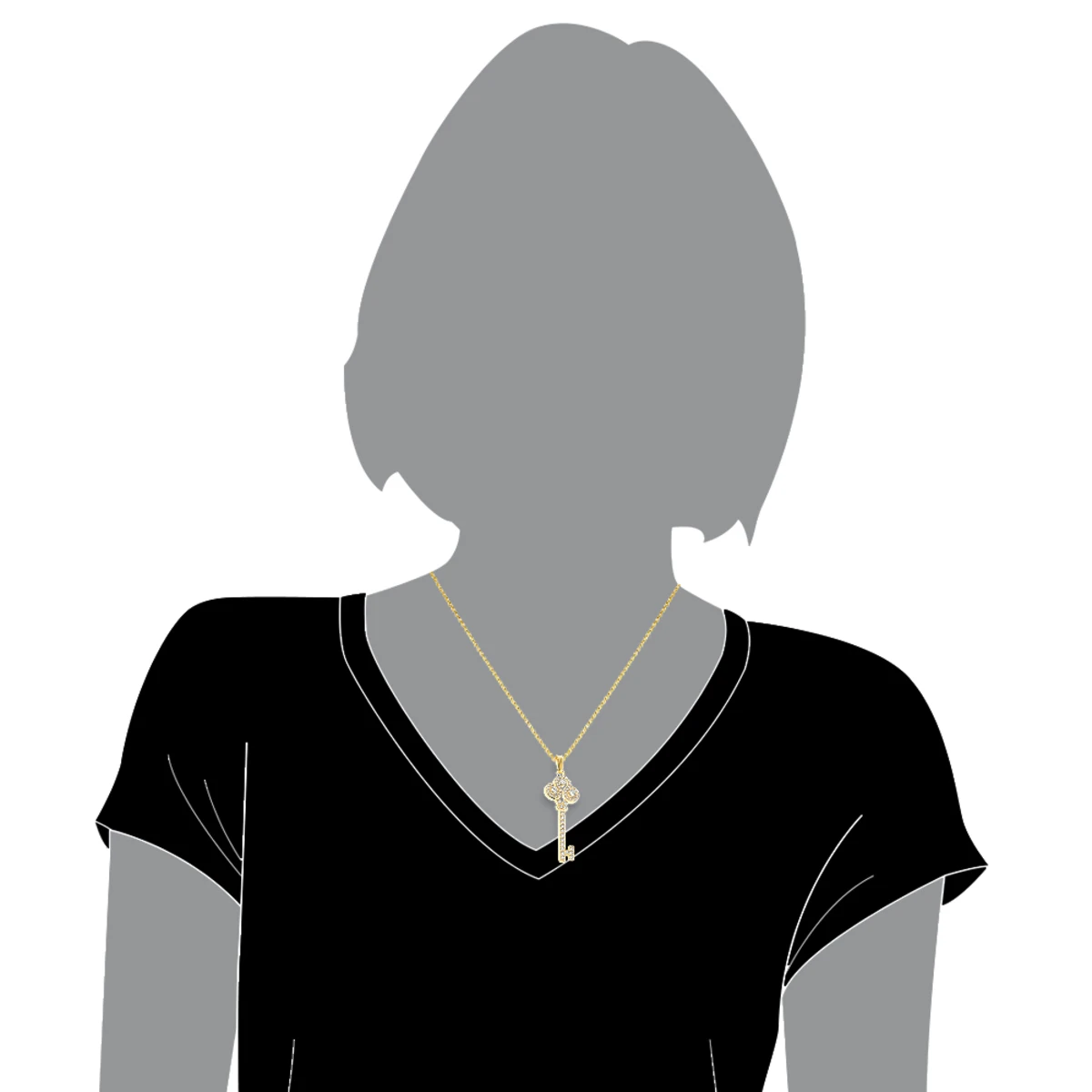 Ladies Necklaces 14K Yellow Gold Diamond Key Pendant 2 Carats