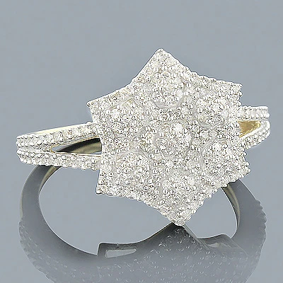 Ladies Solid 14K White Gold Real Diamond Star Ring 0.35ct