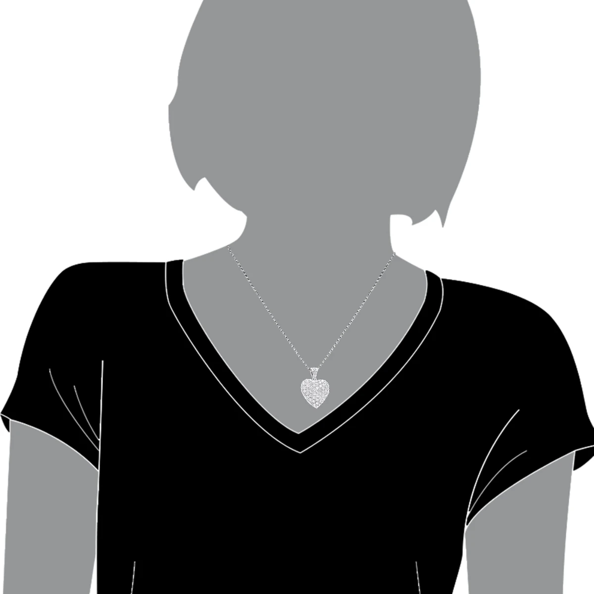 Large 14K White Gold Pave Diamond Heart Pendant 4 Carats
