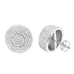 Large 14K White Gold Studs Pave Diamond Earrings 2.3ct
